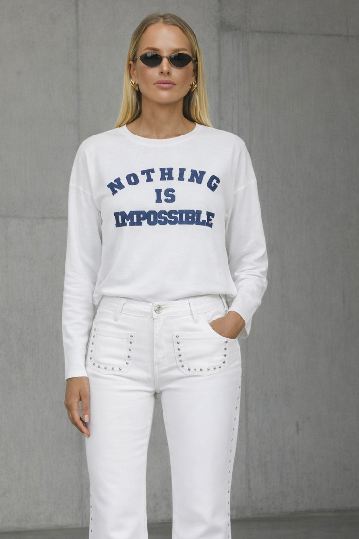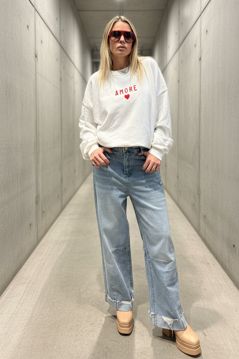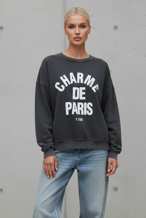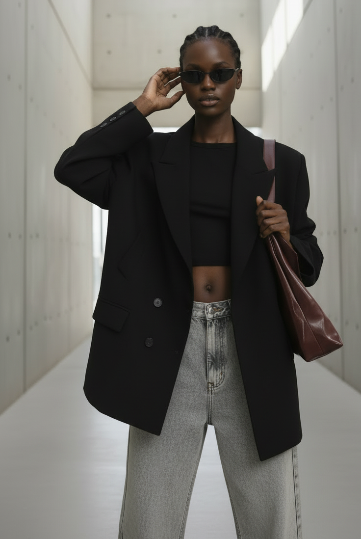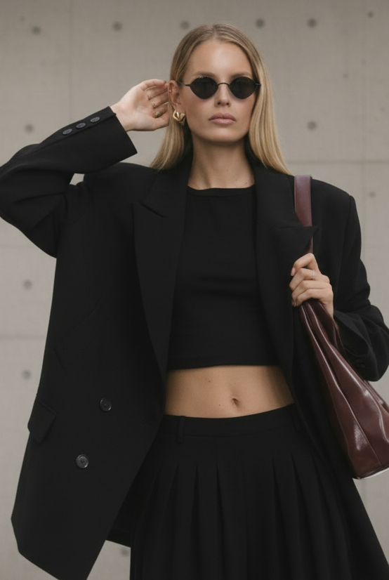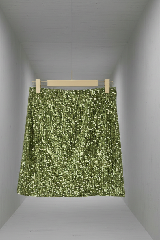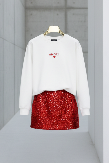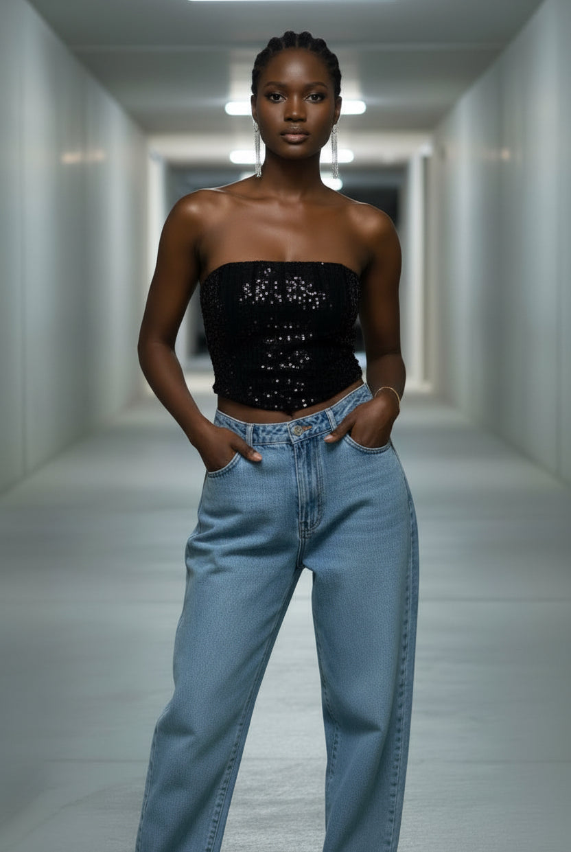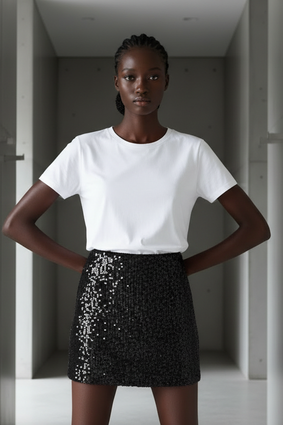 The sparkle adds a bold, feminine edge, while the relaxed sweater keeps the look modern, effortless, and cool.