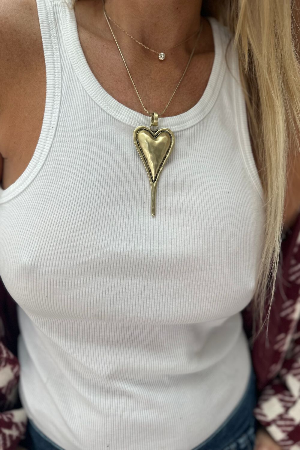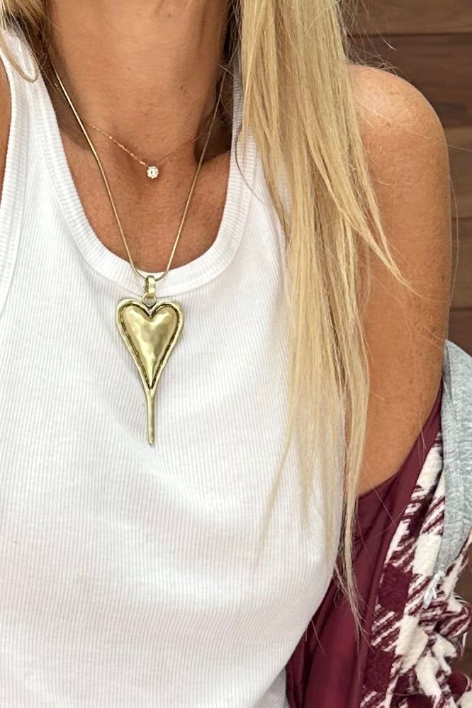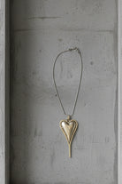 שרשרת עדינה עם תליון לב מוזהב בעיצוב ארוך ואלגנטי, בעל טקסטורה ייחודית ומראה אמנותי.
