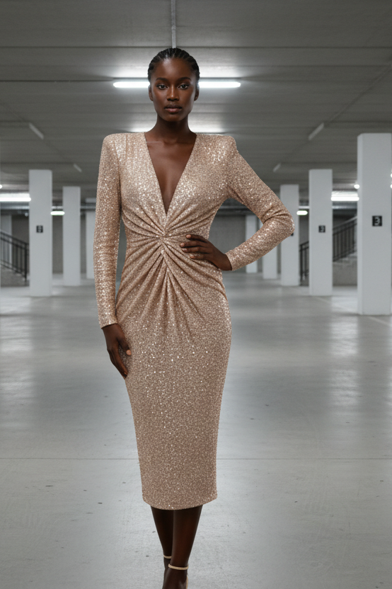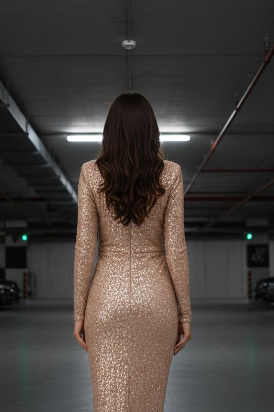עשויה בד מנצנץ עשיר עם מתיחה קלה, הנצמד לגוף בנוחות ומעניק מראה יוקרתי וזוהר.