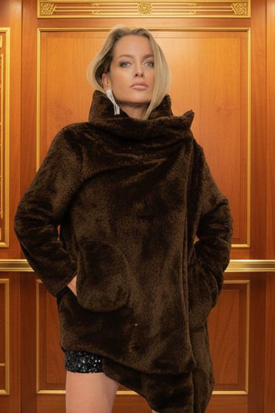 מעיל פליז ללא כובע עם צווארון גדול