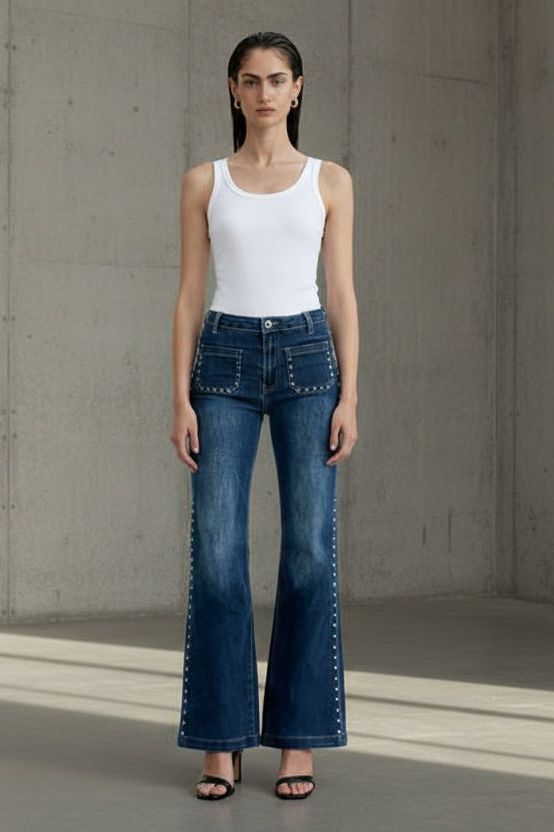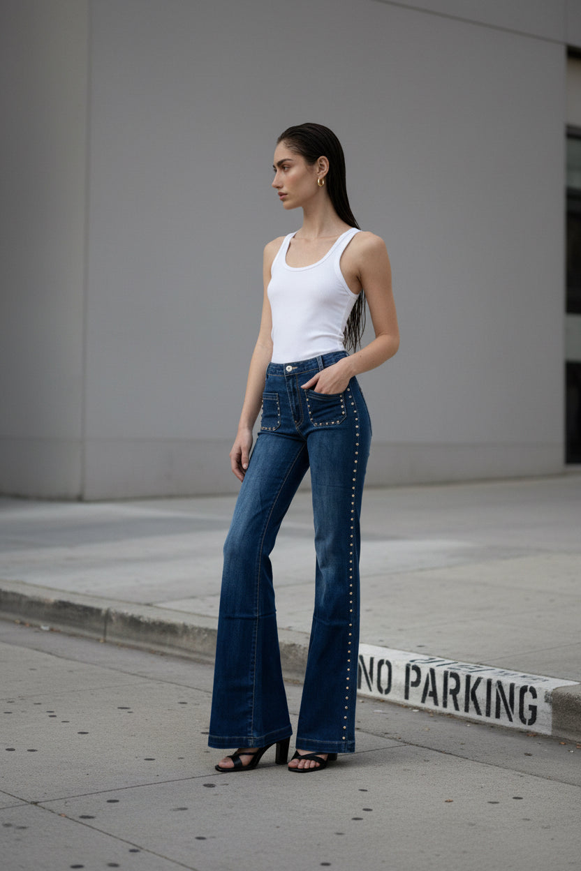 ג’ינס Flare עם ניטים – מראה איקוני