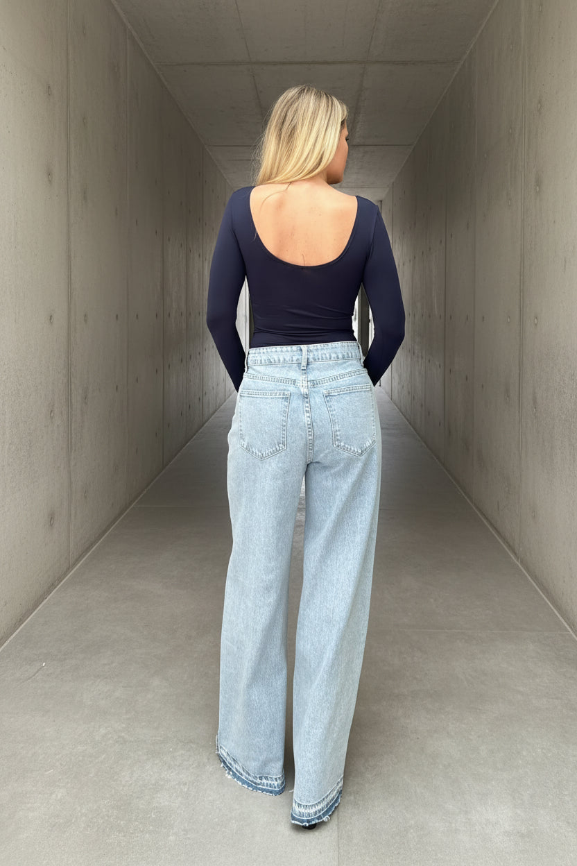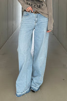 ג׳ינס בהיר בגזרה ישרה רחבה – Stretch Denim