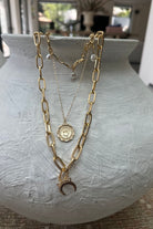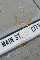 שרשרת שכבות מוזהבת במראה אלגנטי ועשיר, המשלבת שלושה סגנונות שונים: