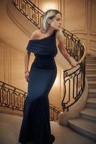 שמלת מקסי שחורה עוצרת נשימה, בגזרה שמחבקת את הגוף ומשתפלת באלגנטיות . החלק העליון בעיצוב א-סימטרי עם כתף אחת חשופה, שמעניק לשמלה מראה דרמטי ומתוחכם. הגב פתוח וחושף את הכתפיים והגב העליון עם רצועות דקות שמוסיפות טוויסט חושני ומודרני. עשויה מבד נעים ונשפך שמחמיא לקימורי הגוף ויוצרת סילואטה זורמת ומרשימה. מושלמת לאירועים חגיגיים ולערבים שבהם את רוצה לגנוב את ההצגה