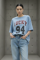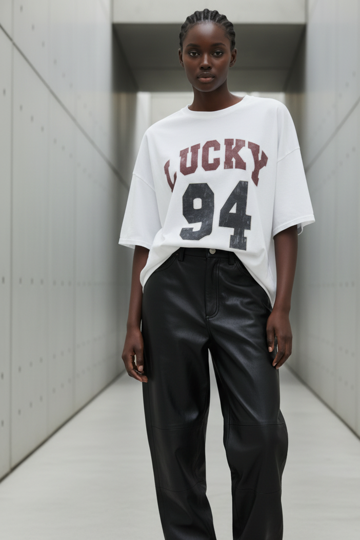טי־שירט אוברסייז מעוצבת בקו נקי ומדויק, מבד נעים ונמתח שמונח על הגוף בצורה משוחררת וקלילה.