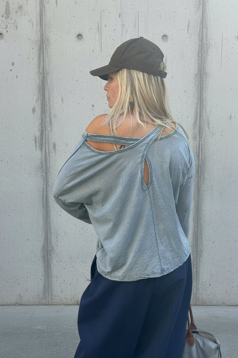 טי שירט ארוכה בגזרת אוברסייז, עשויה בד כותנה רך ונעים עם מראה משופשף
