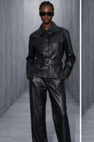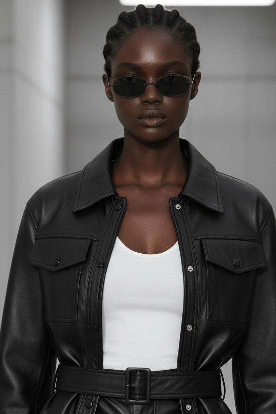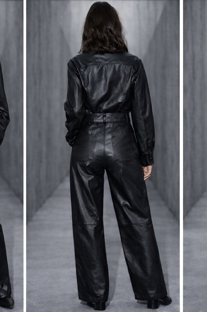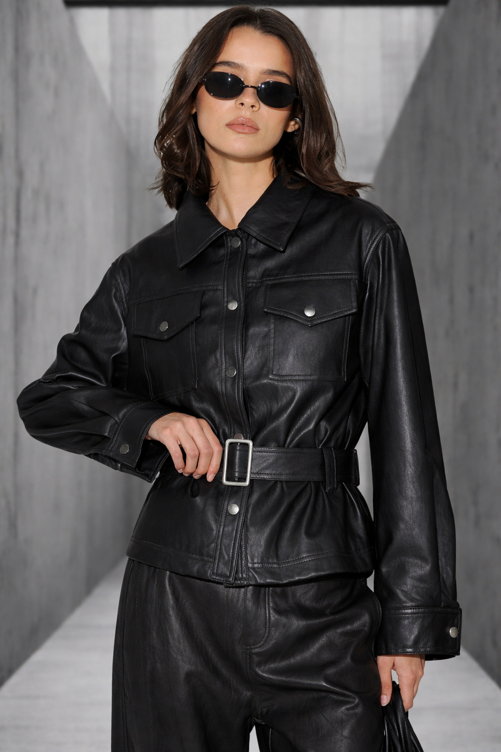 ג׳קט VEGAN LEATHER עם חגורה – גזרה טרנדי־מחויטת