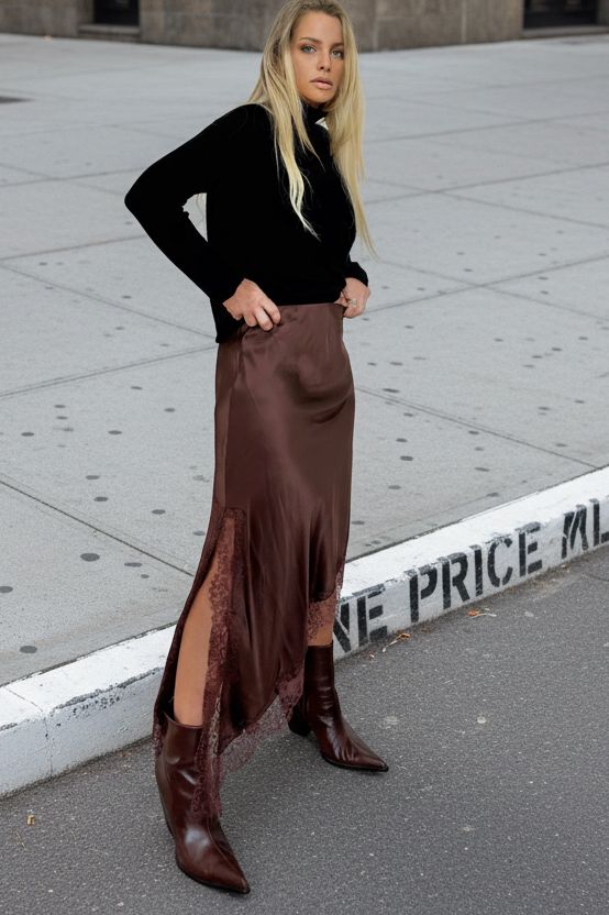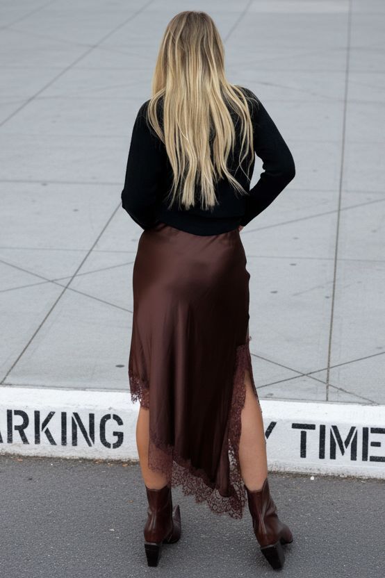 L silk midi skirt
