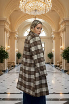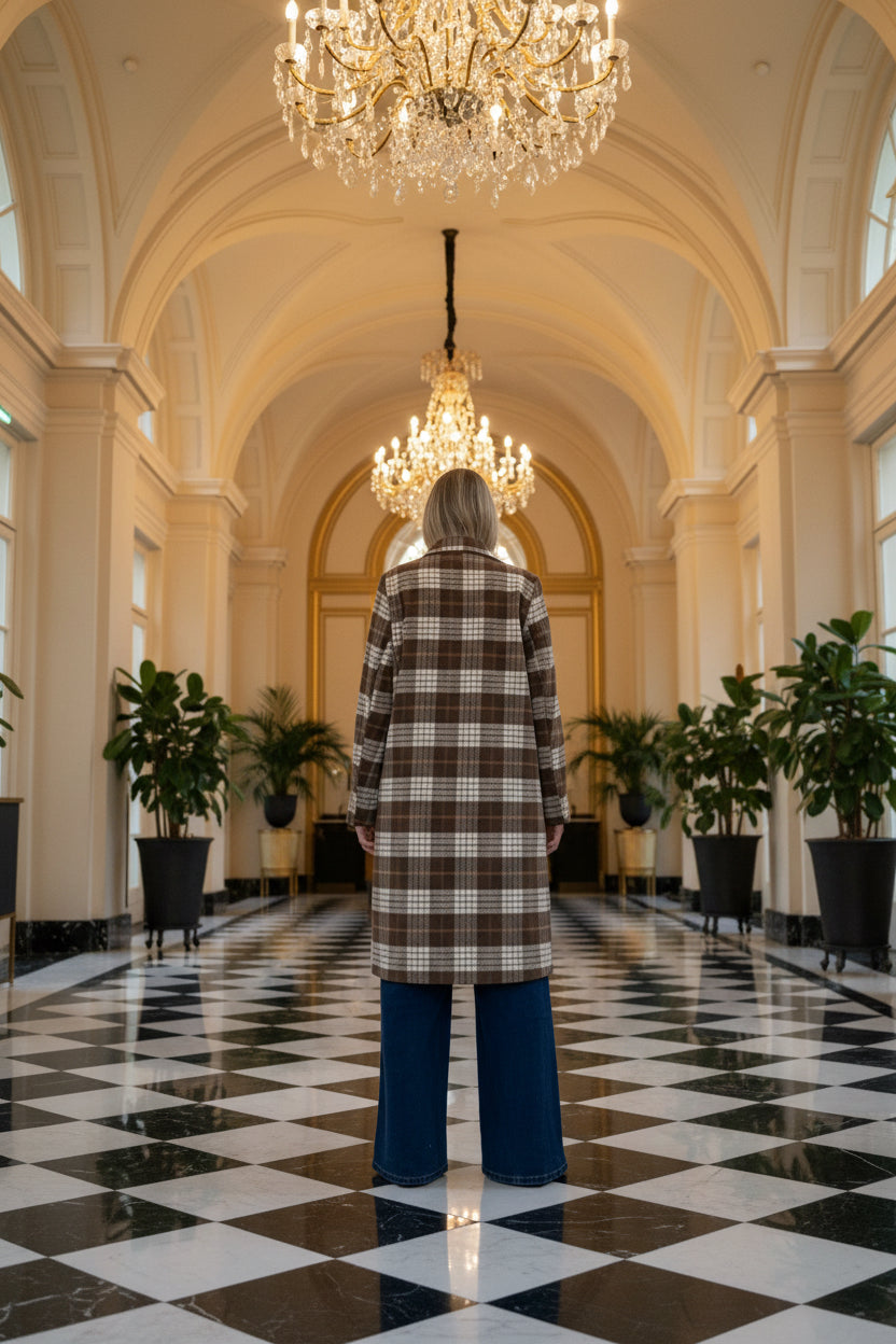 מעיל משובץ בעל מראה קלאסי ועל-זמני, בגזרה ישרה ומעט אוברסייז שמחמיאה לכל מבנה גוף. עשוי בד נעים וחמים במראה חורפי מושלם, עם דוגמת קוביות בגווני חום–שמנת שנותנת טאצ’ של אלגנטיות כפרית.