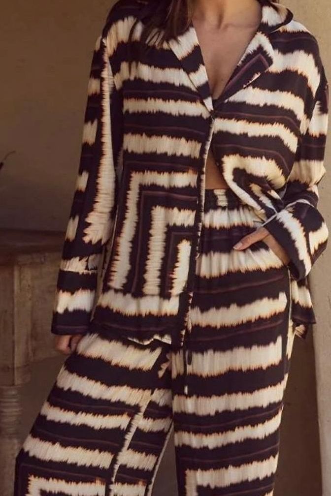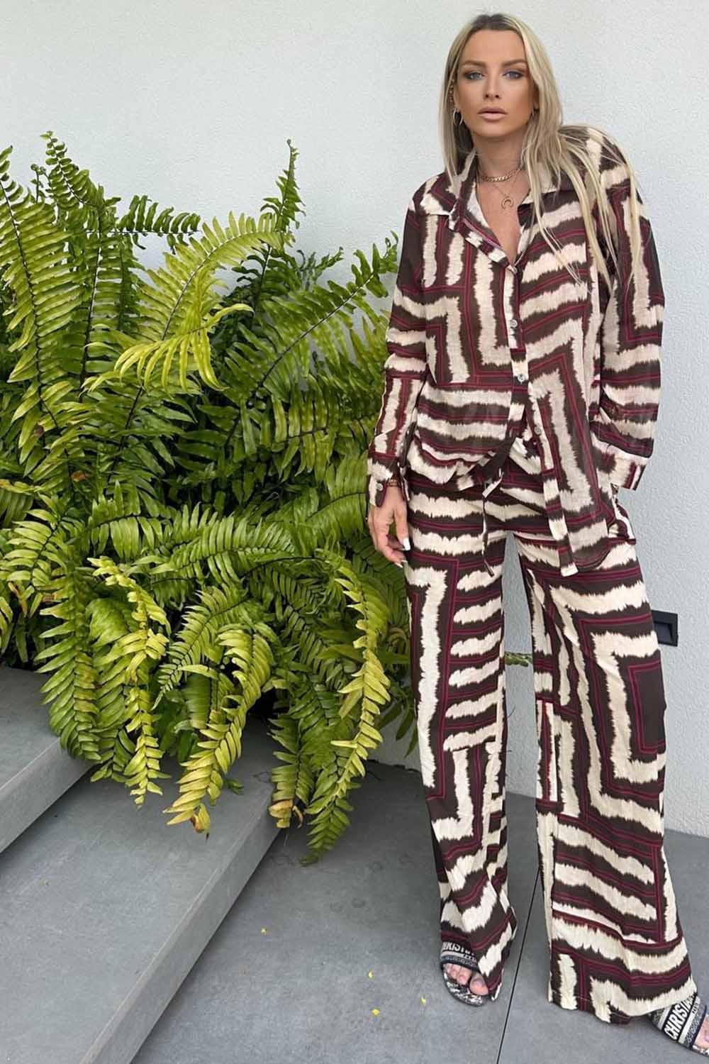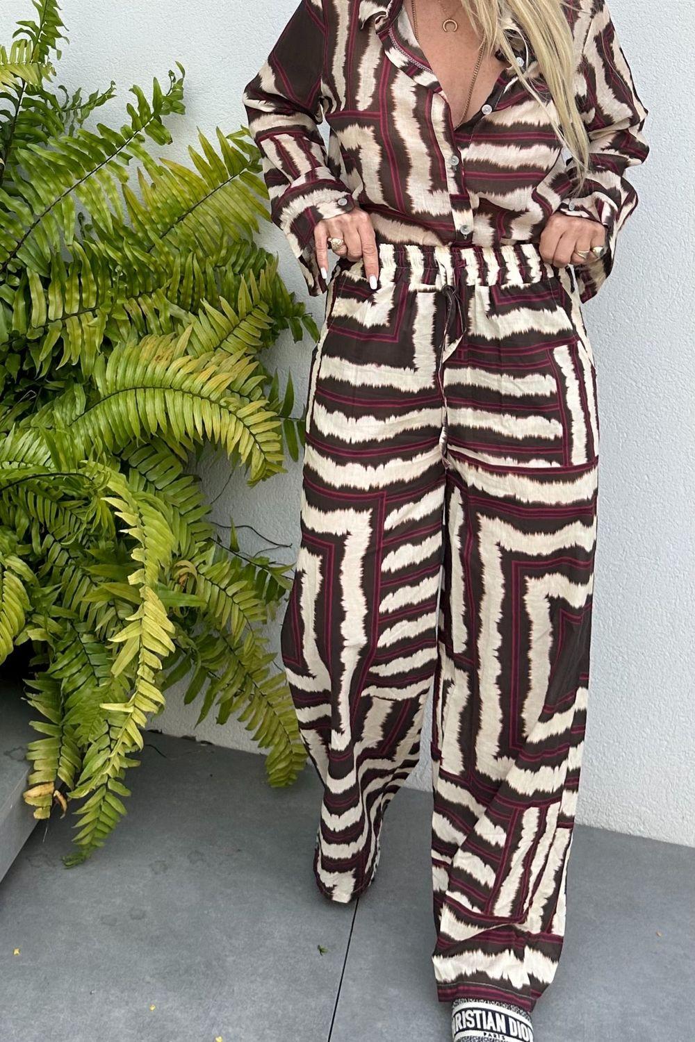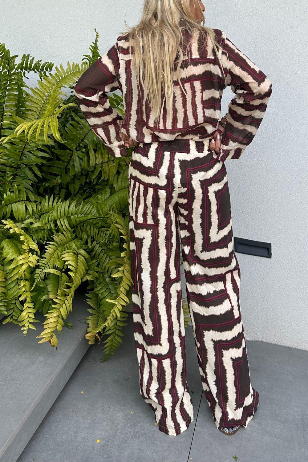 E print pants brown