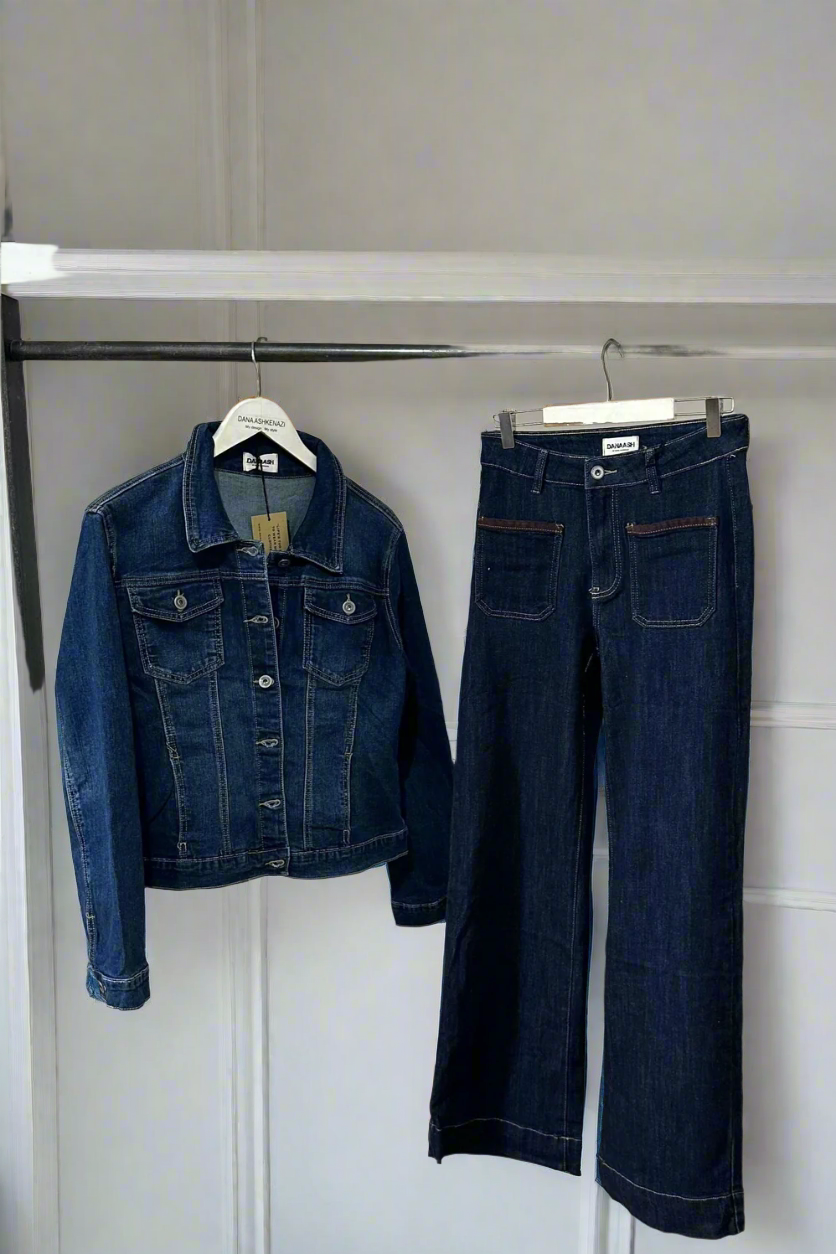 ז׳קט ג׳ינס קלאסי על-זמני, בגזרה ישרה ומחמיאה. עשוי בד דנים איכותי עם טקסטורה טבעית, בעל כיסי חזית וכפתורים מטאליים בחזית. פריט מושלם לשכבה נוספת בעונות מעבר – משתלב בקלות עם שמלות, טי-שירט או מכנסיים ליצירת לוק יומיומי עם טאץ’ אורבני וקולי