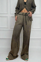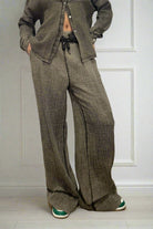 מכנסי כותנה פיקה בגזרת אוברסייז משוחררת, עם גומי אלסטי וגזרת שרוך מתכווננת לקשירה קדמית. עשויים מבד אוורירי, נושם ונעים למגע, מושלמים ליום קיץ או למראה קז’ואל-אלגנטי. מגיעים עם כיסים בצד לנוחות מקסימלית.