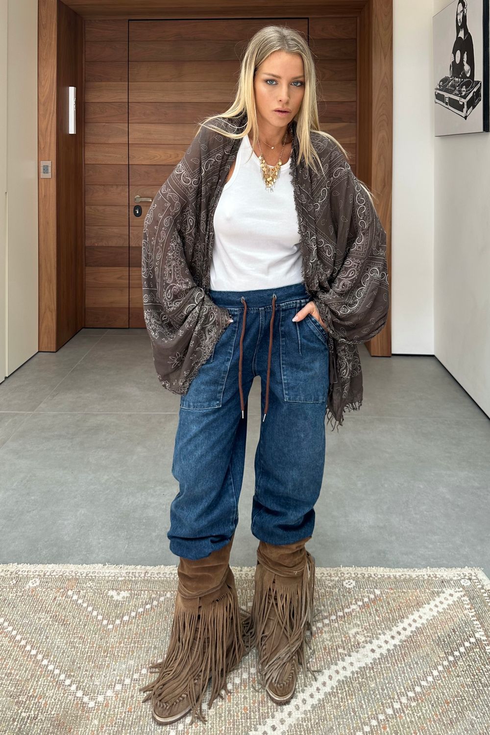 צעיף בנדנה בסיומת פרנזים שניתן לקשירה על המותן