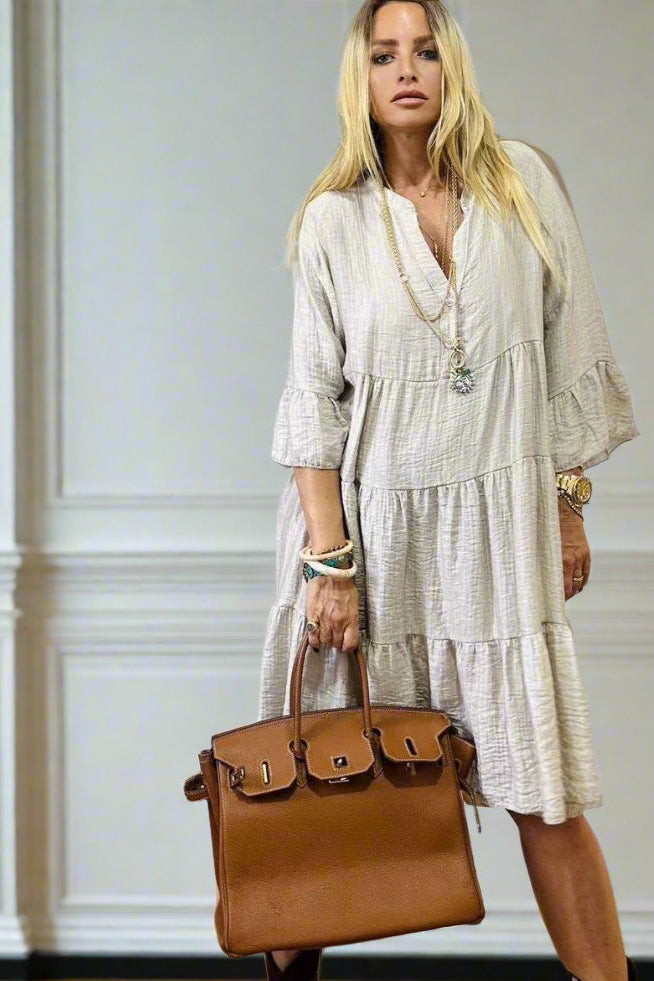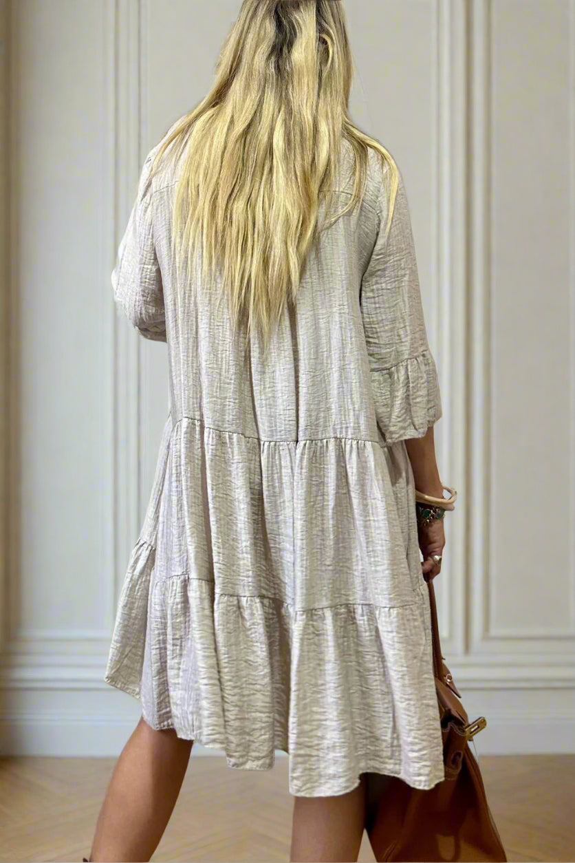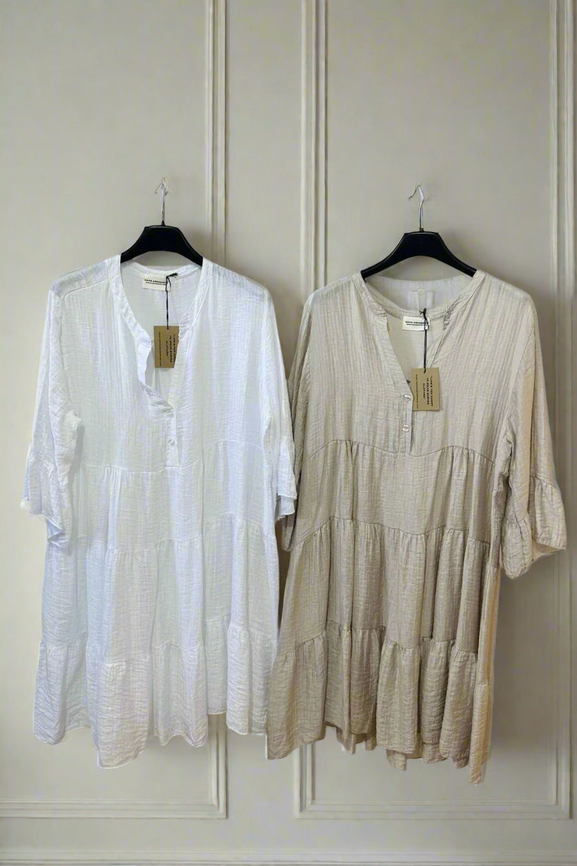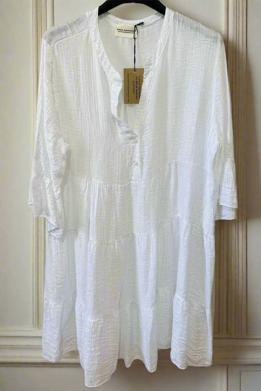 שמלת מידי קלילה  משוחררת, עשויה בד חיתולי נושם ונעים למגע