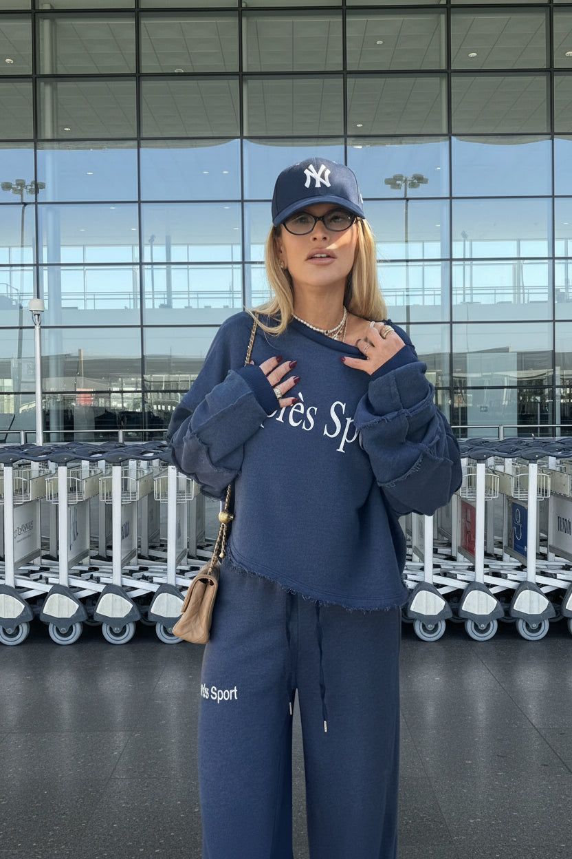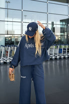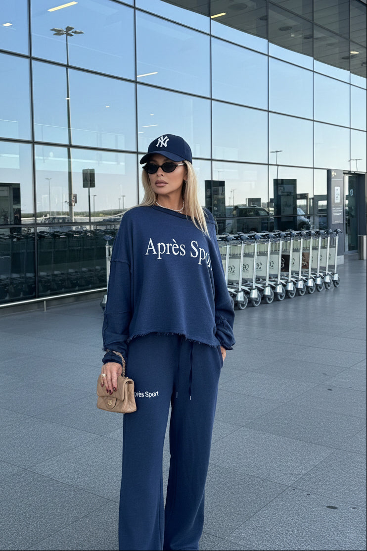 הדפס Après Sport בחזית, קצוות פרומים ותפרים חיצוניים שנותנים מראה מודרני ואורבני.