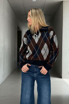 הדפס ארגייל קלאסי בגוונים חמים של חום, כחול ואפור
