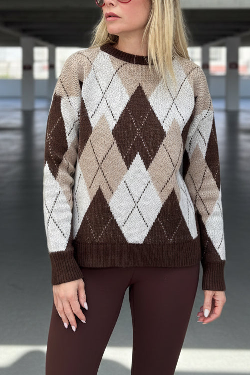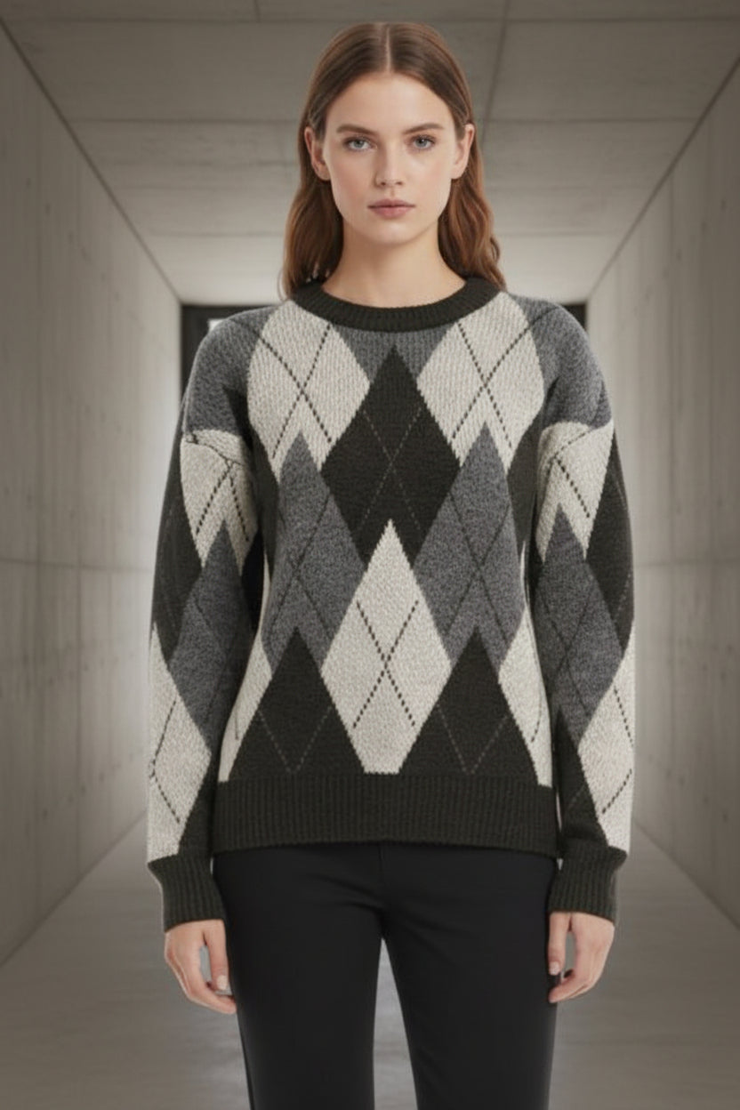 סריג קלאסי ומעודכן בהדפס ארגייל על-זמני, בגזרה ישרה ונקייה שמחמיאה למגוון מבני גוף.