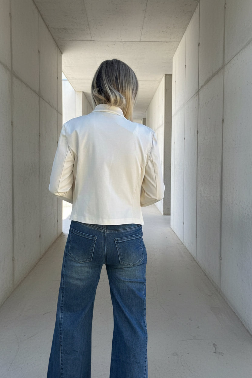 ג׳קט קליל ומדויק בגזרת בוקסה מחמיאה, עשוי מבד כותנה איכותי עם מראה נקי ומלוטש.