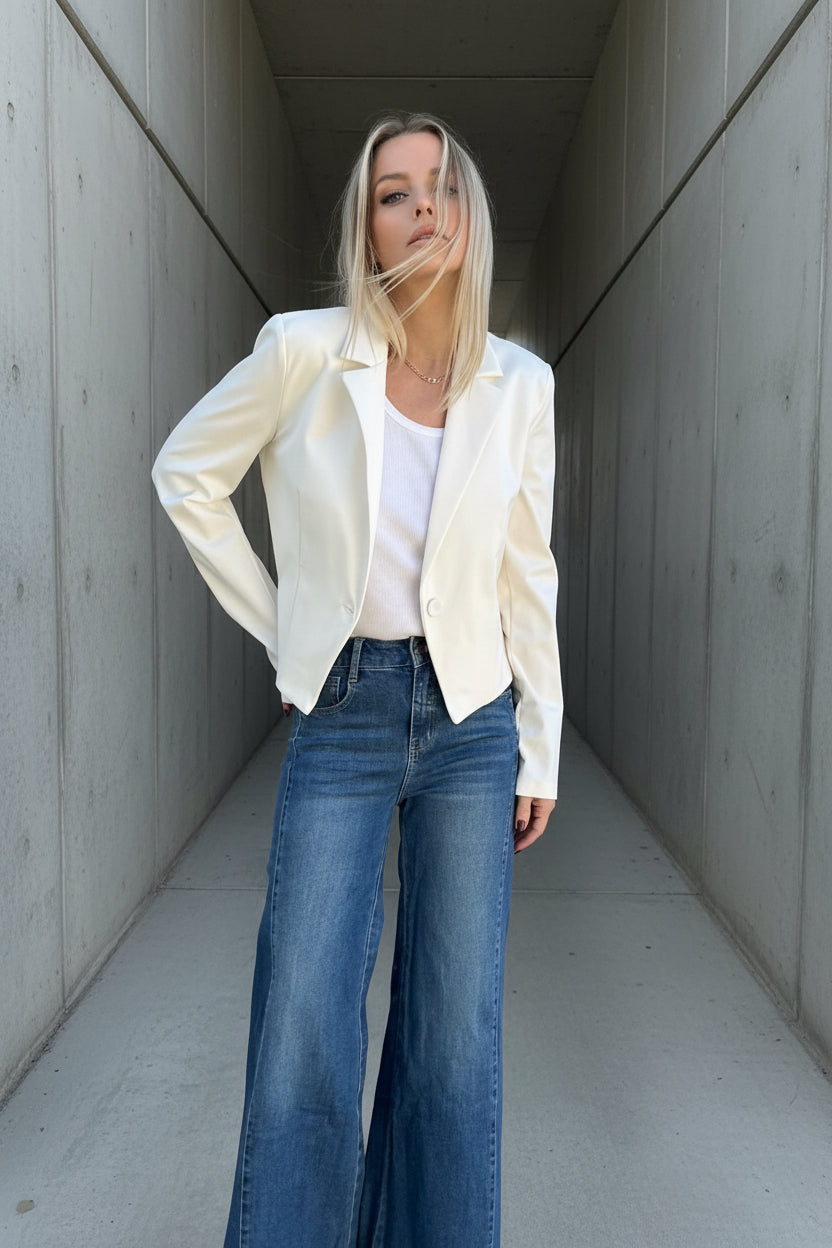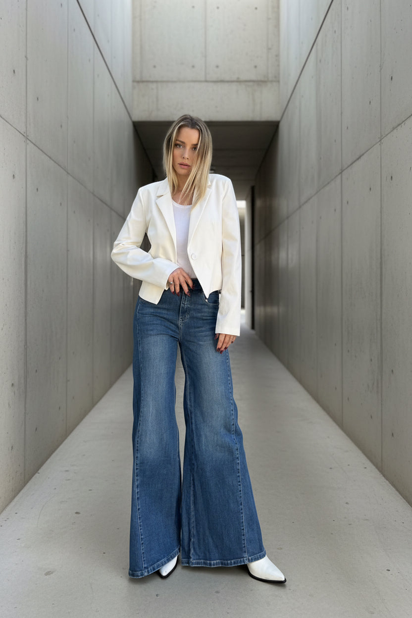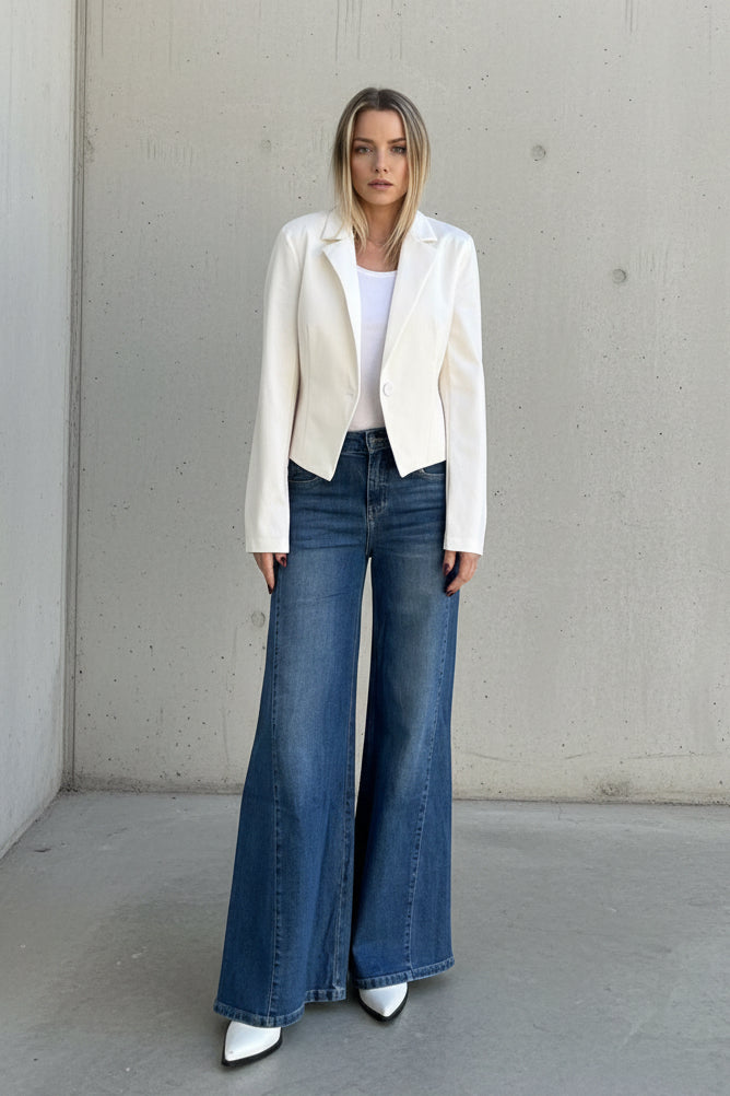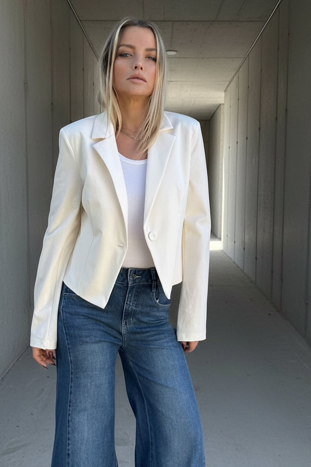 הגזרה הקצרה יושבת פיקס על המותן ויוצרת לוק אלגנטי–יומיומי שמתאים לכל שילוב: ג׳ינס רחב, חצאית פאייטים או מכנס מחויט.