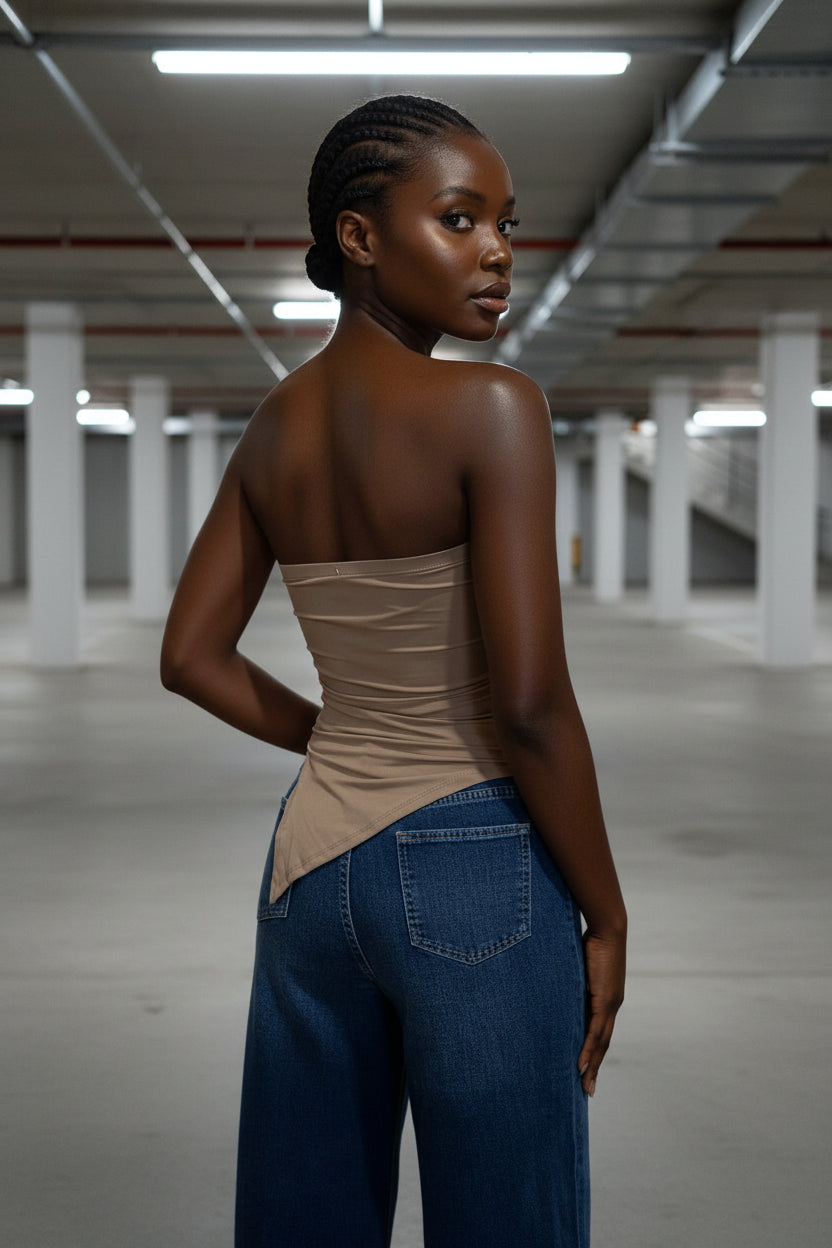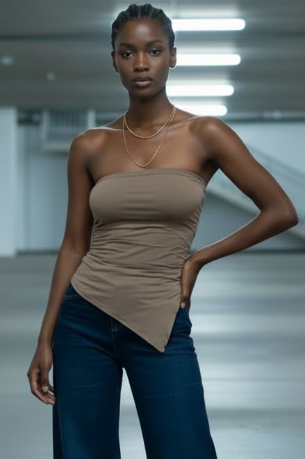 טופ סטרפלס מחמיא ומדויק, עשוי מבד אלסטי איכותי שנמתח ומתלבש בצורה מושלמת על הגוף. הגזרה צמודה ומעצבת, עם חלק תחתון אלכסוני שמאריך את קו הגוף ויוצר מראה נשי, מחוטב וסטייליסטי. מתאים למידות 34–40 בזכות הגמישות של הבד.