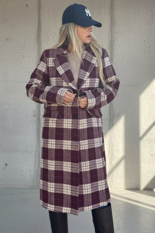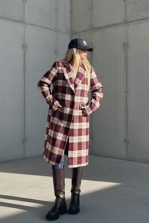 מעיל משובץ בעל מראה קלאסי ועל-זמני, בגזרה ישרה ומעט אוברסייז שמחמיאה לכל מבנה גוף. עשוי בד נעים וחמים במראה חורפי מושלם, עם דוגמת משבצות -שיא הטרנד של העונה.