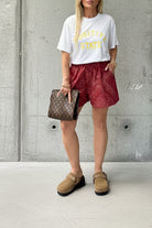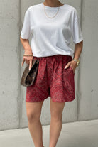 הפריט האולטימטיבי לקיץ קליל וסטייליסטי! שורטס בגזרה רפויה ונינוחה, עשוי בד דק ואוורירי עם הדפס בנדנה עדין בגוון בורדו טרנדי. גומי במותן לנוחות מקסימלית והתאמה מושלמת למבנה הגוף. מושלם לשילוב עם גופייה, טי-שירט קצרה או חולצה מכופתרת ללוק של חופש.