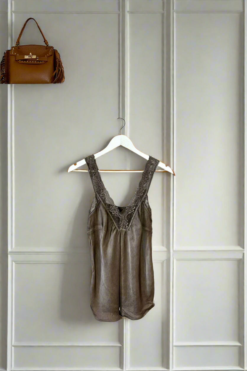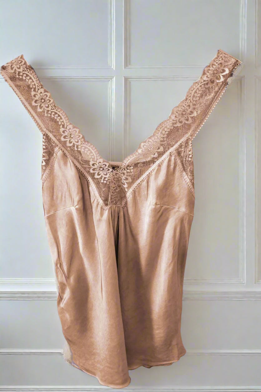 מחשוף V מעוטר בתחרת פרחים עדינה