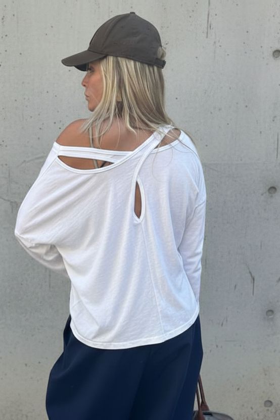 בחזית הדפס לבן בולט ובגב פתחים קטנים שנותנים טאץ’ נועז ומלא סטייל