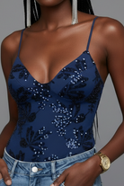 בגד גוף נשי ומרשים בעיצוב אלגנטי, עם כתפיות דקות וגזרת מחטב מחמיאה. החלק העליון מעוטר בפאייטים מנצנצים בדוגמה ייחודית, המעניקים מראה יוקרתי וסטייטמנטי, בעוד החלק התחתון חלק ונוח ללבישה