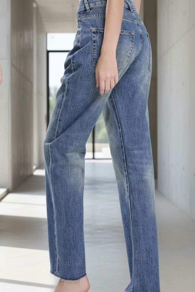 ג’ינס בגזרה ישרה עם ווייב אורבני ונונשלנטי.