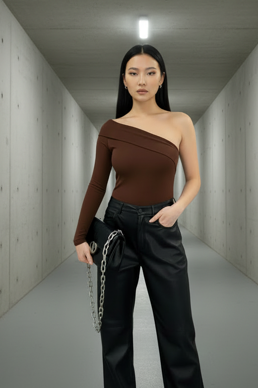 בגד גוף בגזרת כתף אחת, עשוי בד נמתח ורך שמחמיא ומצמיד את הגוף בצורה מושלמת.