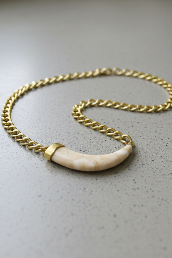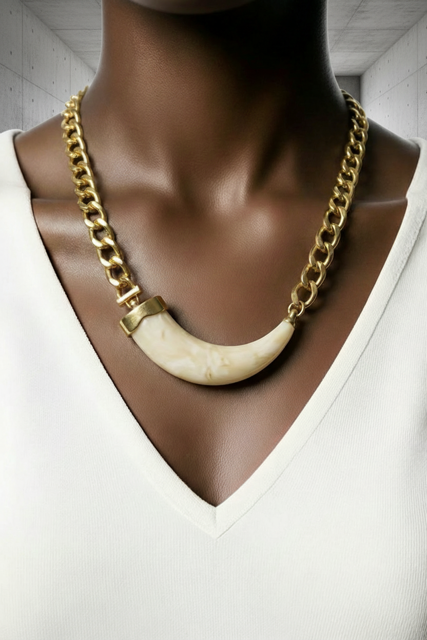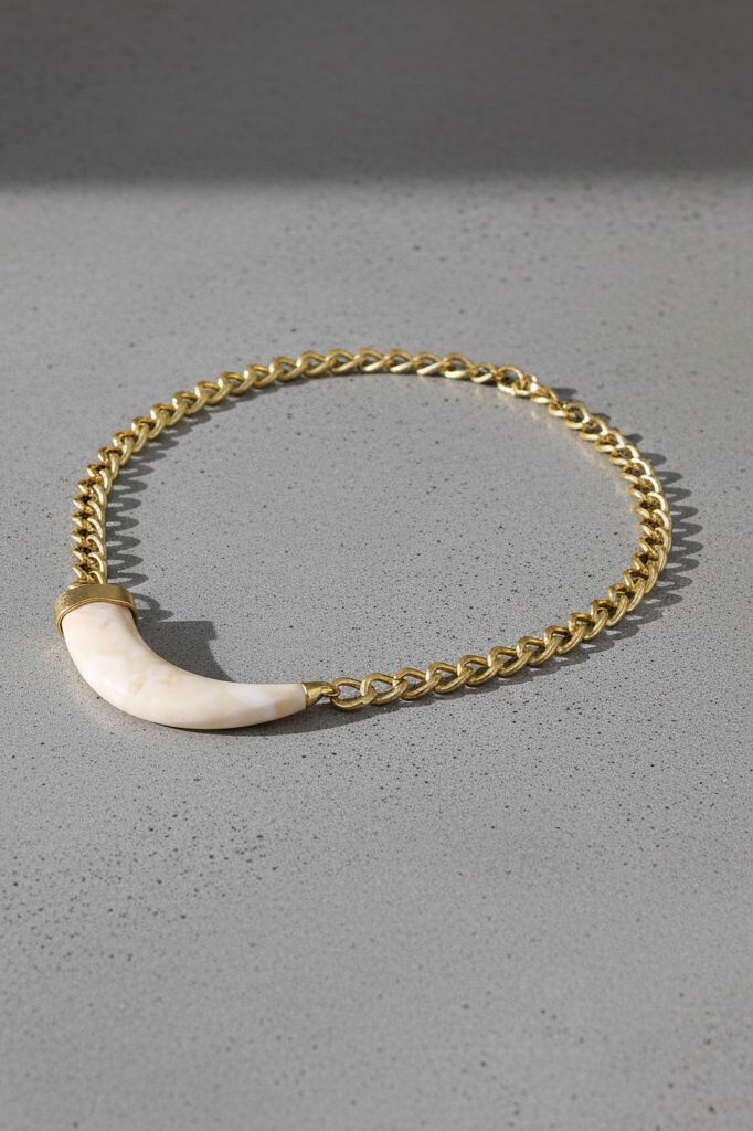 שרשרת זהב עם תליון חולד־הורן בצבע טבעי, מעניקה לוק נועז ויוקרתי. פריט סטייטמנט מושלם לשדרוג כל הופעה