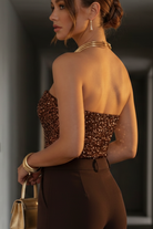בגד גוף ערב יוקרתי עם חלק עליון מנצנץ בגזרת סטרפלס ו־פתח V עמוק שמחמיא ומאריך את הגוף.