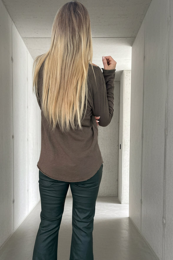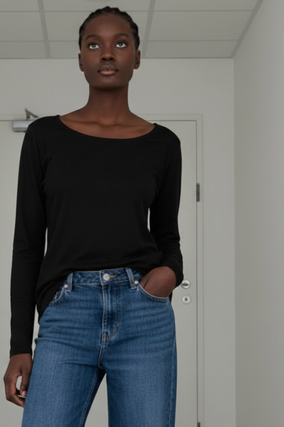 גזרה מחמיאה שמתאימה ללבישה לבד או כשכבת בסיס מתחת לסריג, ג’קט או מעיל – פריט על־זמני שחוזרים אליו שוב ושוב.