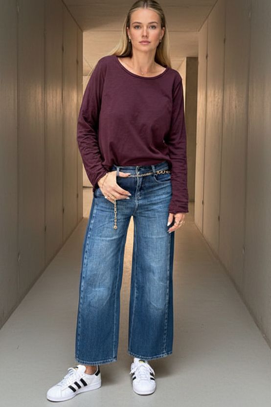עם צווארון עגול וגזרה רפויה ונשפכת, עשויה בד רך במיוחד עם תחושת קלילות טבעית על הגוף.