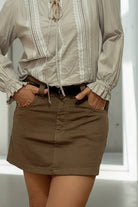 חצאית־מכנס מג’ינס בגזרה קצרה ומחמיאה שמשלבת בין המראה הנשי של חצאית לנוחות של מכנס.