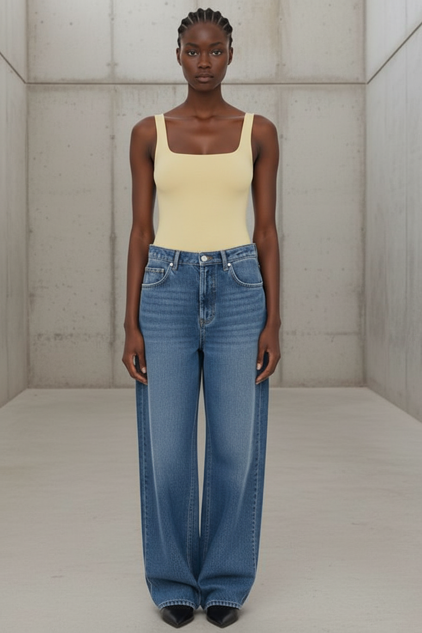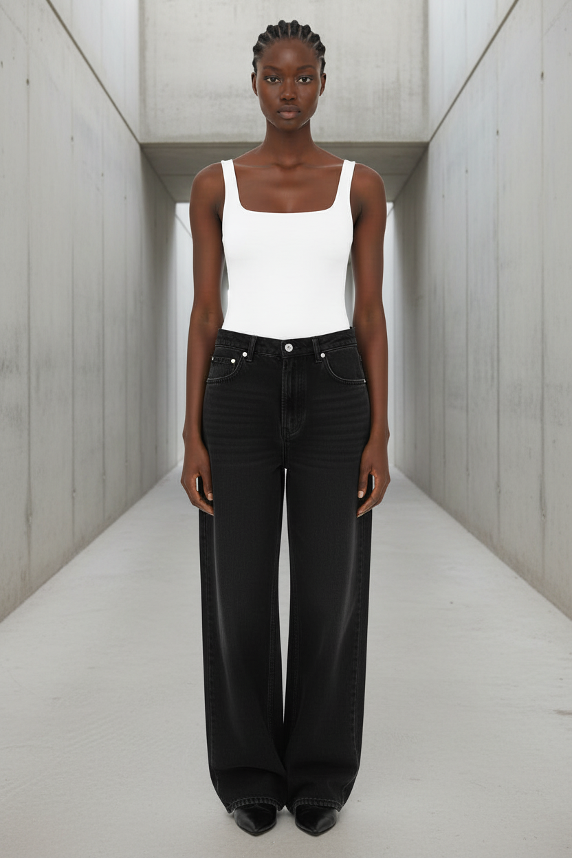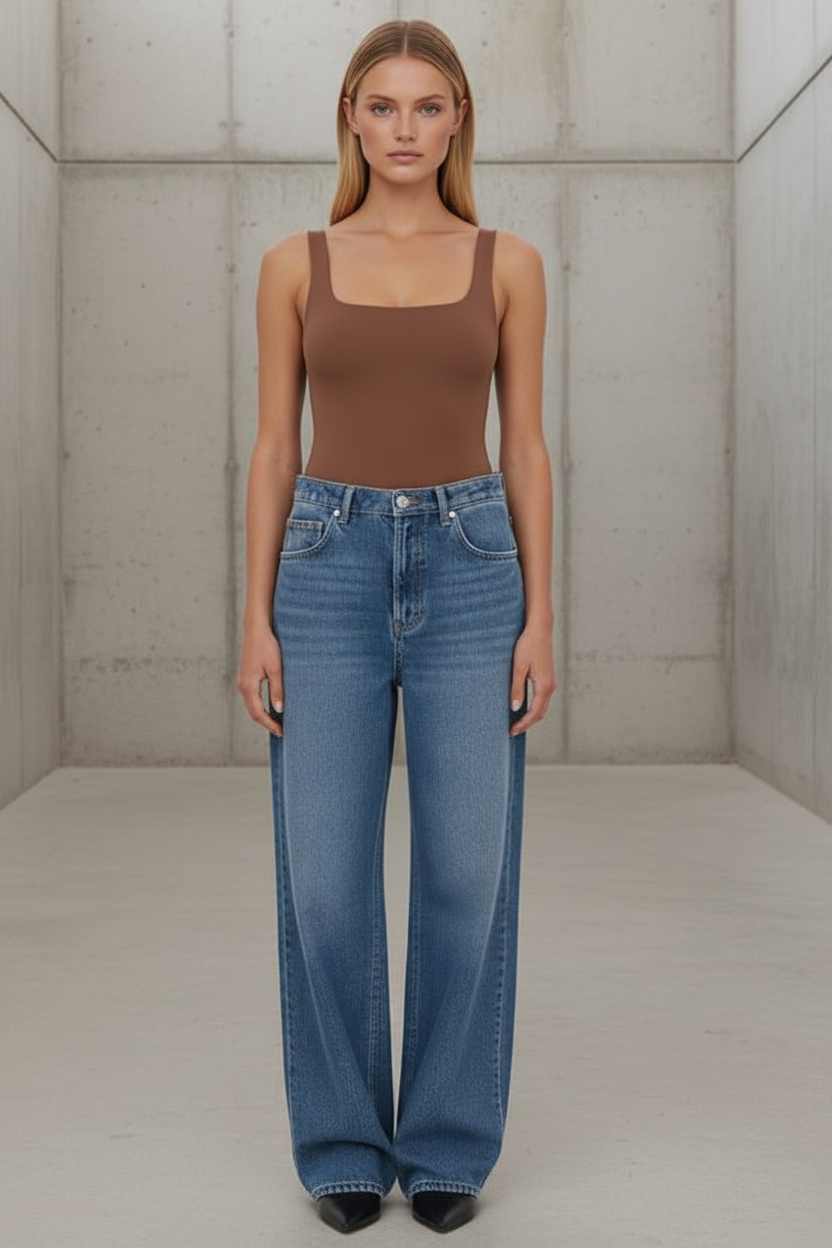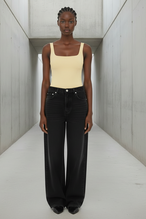 גופיית בסיס חלקה בגזרת Square Neck נקייה ומחמיאה, עם כתפיות רחבות ומראה אסוף ואלגנטי.