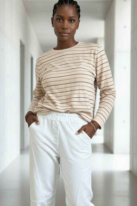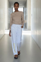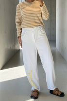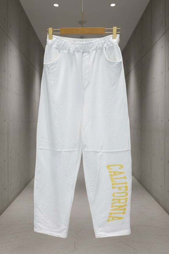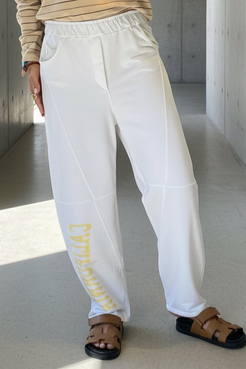 מכנס טרנינג בגזרה נינוחה ומדויקת, עם הדפס בולט לאורך הרגל שמכניס טוויסט אדג’י וייחודי ללוק.