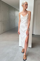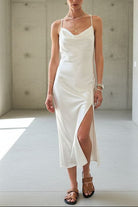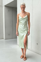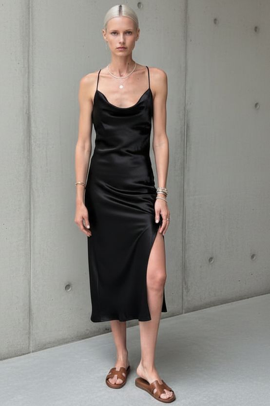 גזרת מידי עם שסע צדדי וכתפיות דקות ללוק נשי ונקי.