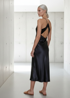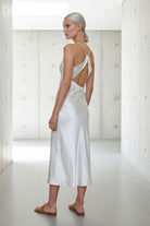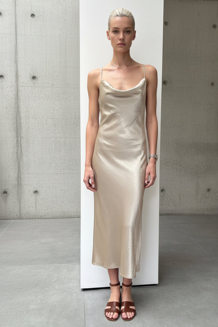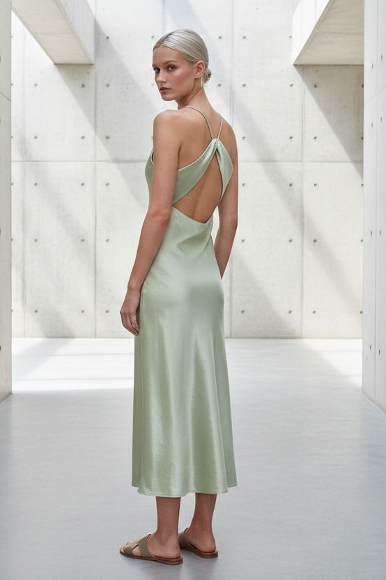 שמלה אלגנטית במגע משי, עם נפילה רכה שמלטפת את הגוף.